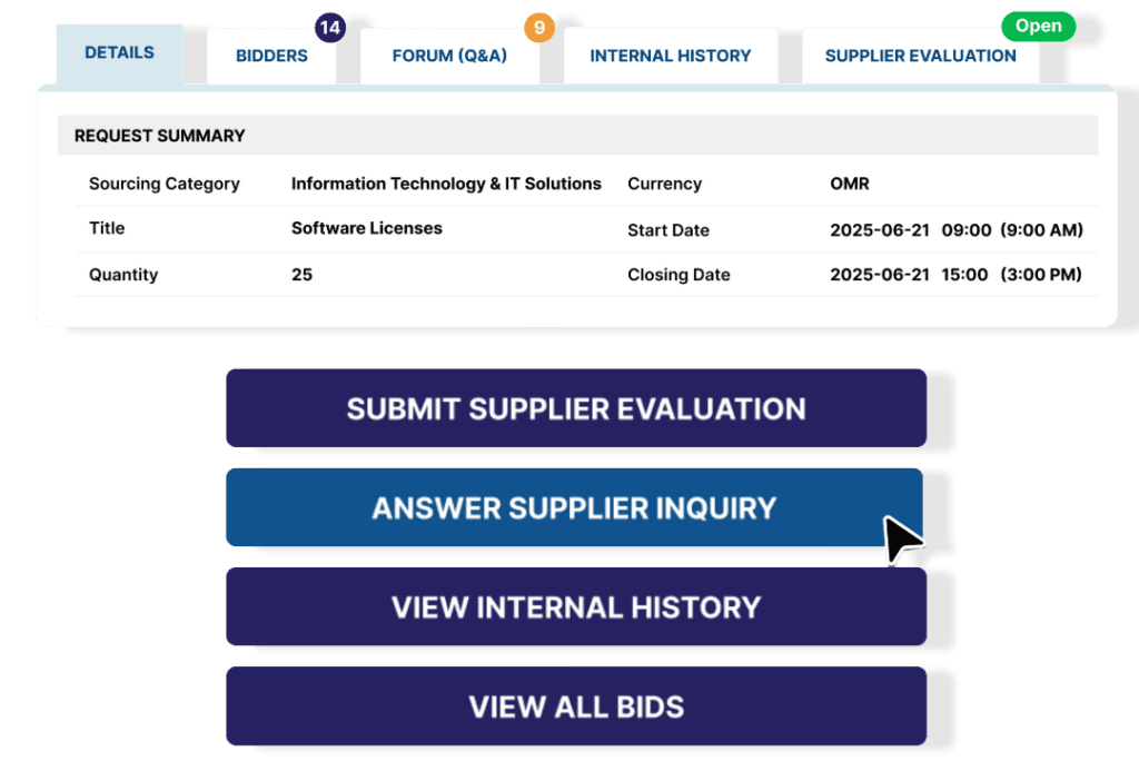قيّم عروض الموردين وتواصل معهم، مع متابعة دقيقة عبر سجل التدقيق المدمج. احصل على تحليلات وبيانات (MIS) تساعد في تحسين الأداء ورفع الكفاءة.